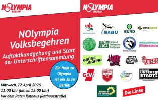 Berlin bewirbt sich aktuell um die Austragung von Olympischen Spielen. Diese bergen erhebliche finanzielle Risiken und könnten neue Kürzungen nach sich ziehen – auf Kosten sozialer und ökologischer Projekte. Daher plant das Bündnis NOlympia einen Volksentscheid, um den Senat dazu aufzufordern, die Bewerbung zurückzuziehen.
