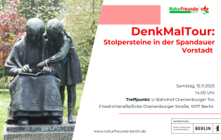 Seit mehreren Jahren führen die NaturFreunde Berlin im Rahmen ihrer Reihe „DenkMalTour“ „Stolpersteintouren“ durch. Bei den Touren vermitteln die Aktiven Informationen über das Leben und das Wirken der Menschen, für die die Stolpersteine initiiert wurden, und zeichnen den Nazi-Terror nach.
